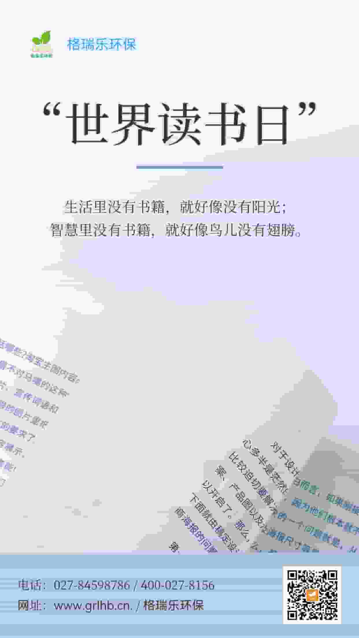 在世界讀書(shū)日,讓我們一同翻開(kāi)環(huán)保的畫(huà)卷,邁向綠色的未來(lái)!格瑞樂(lè)環(huán)保,與你并肩,以智慧呵護(hù)我們的地球,使每一幅畫(huà)面都展現(xiàn)出環(huán)保的決心與使命,讓我們一起為美好世界而讀!你愿意與格瑞樂(lè)環(huán)保一同前行嗎?